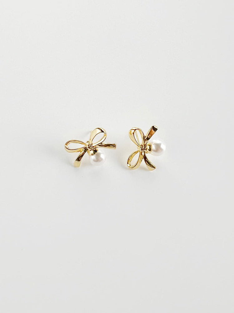 This “Cassette Small Studs” combines gold, bow and pearl, which is a fantastic match. A golden bow associates something romantic, beautiful and seraphic. Butterflies have beautiful appearances and a variety of shapes, which are suitable for all kinds of jewelry. Butterfly flying is a beautiful scene seen in life, which is heart-warming and full of life interest. Oriental legend has it that pearls are the most precious treasures in the world formed by shellfish absorbing the essence of moonlight. Ancient Indians believed that pearls were made of dew in the morning by gods; Greek myths and legends believe that pearls that symbolize light and hope are condensed by the tears of the gods. OE hopes that this “Cassette Small Studs” can give you lightness, warmth and elegance, with the essence of the moon, the tears of the gods, light and hope all rolled into one.