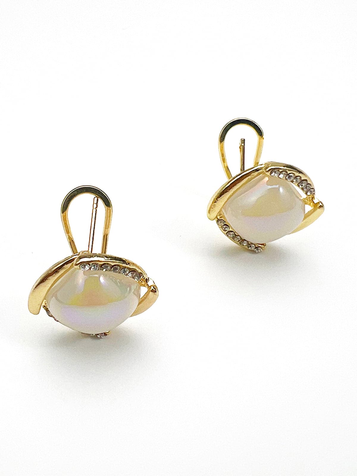 This “B.P. Delicate Earrings” looks like two pearls surrounded by leaves, implying a lively elegance. An uncut gem is not something precious, but a fine pearl taken from a pearl clam is a beautiful ornament even without polishing. Therefore, some gem experts believe that pearls may be the earliest ornaments used by human beings. The exact time when pearls were discovered is unknown. Because pearls are easily damaged, it was difficult for ancient pearls to pass down. OE is willing to send this precious pearl to your ears and let it shine with your beauty.