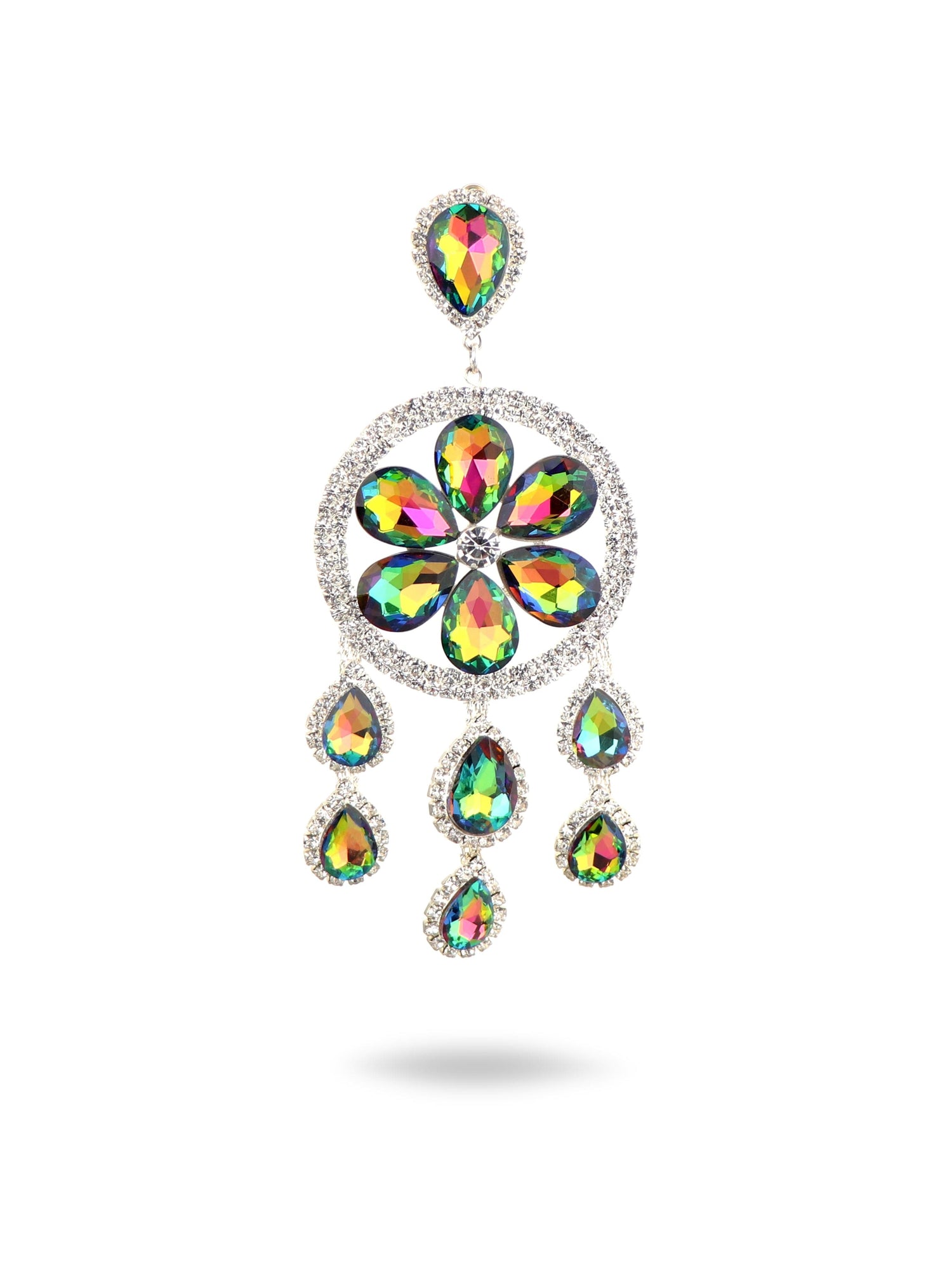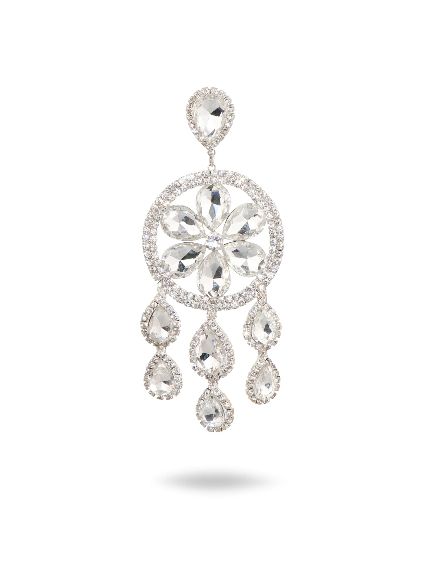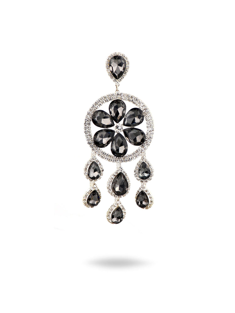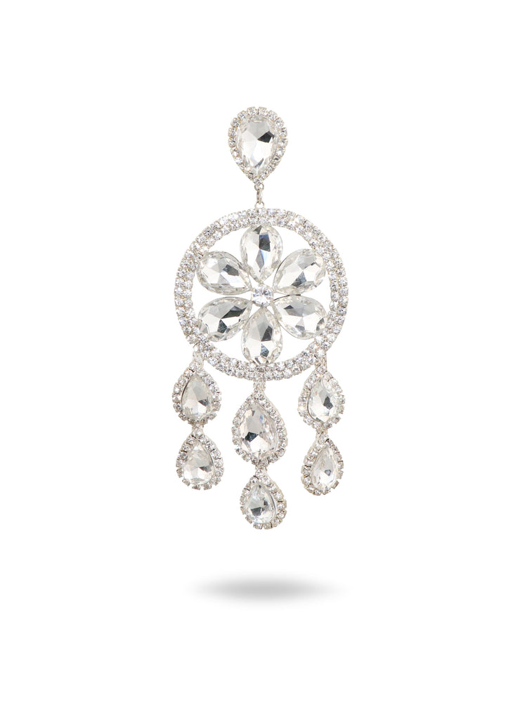 “Phantom Crystal Teardrop Earrings” gently curve in just the right place to fit the earlobe perfectly. We love the beautiful droplet rhinestone suspended below.