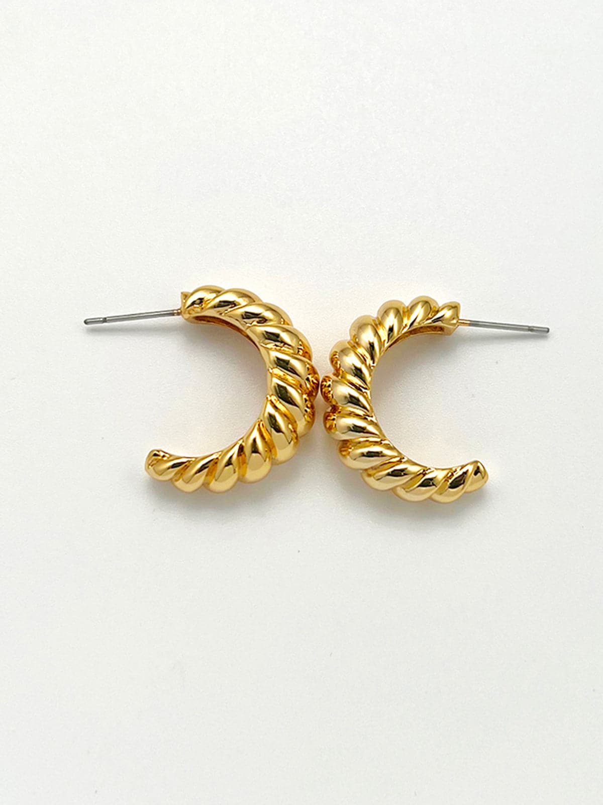 Inspired by twisted knots, this “Twisted Gold Half Hoop Earrings” is full of fun to wear. Playful earrings not only decorate your ears and make your outfits pop, but also relax your mood and keep you in a perfect state at all times. Now get this “Twisted Gold Half Hoop Earrings” and have a fabulous day.