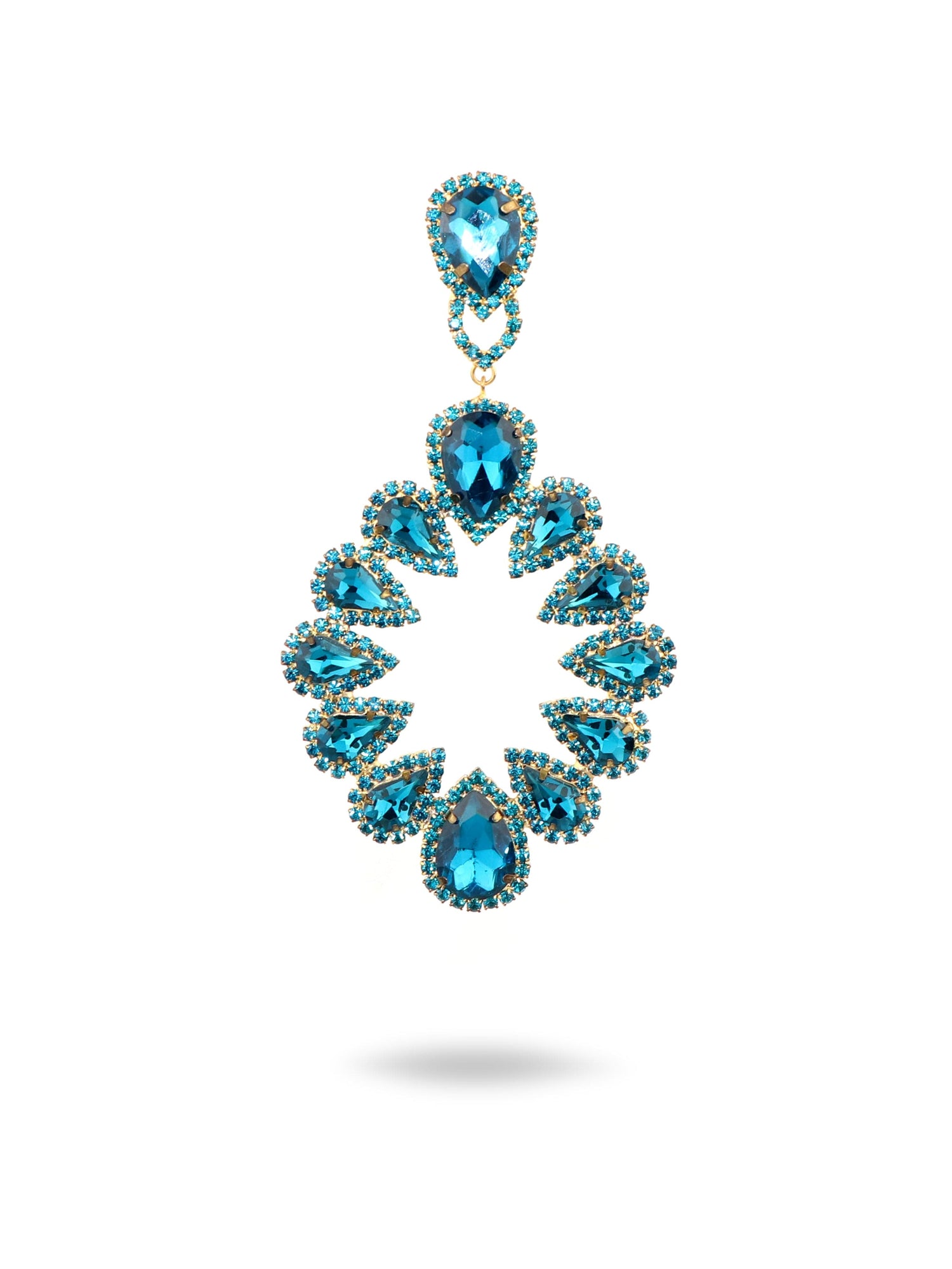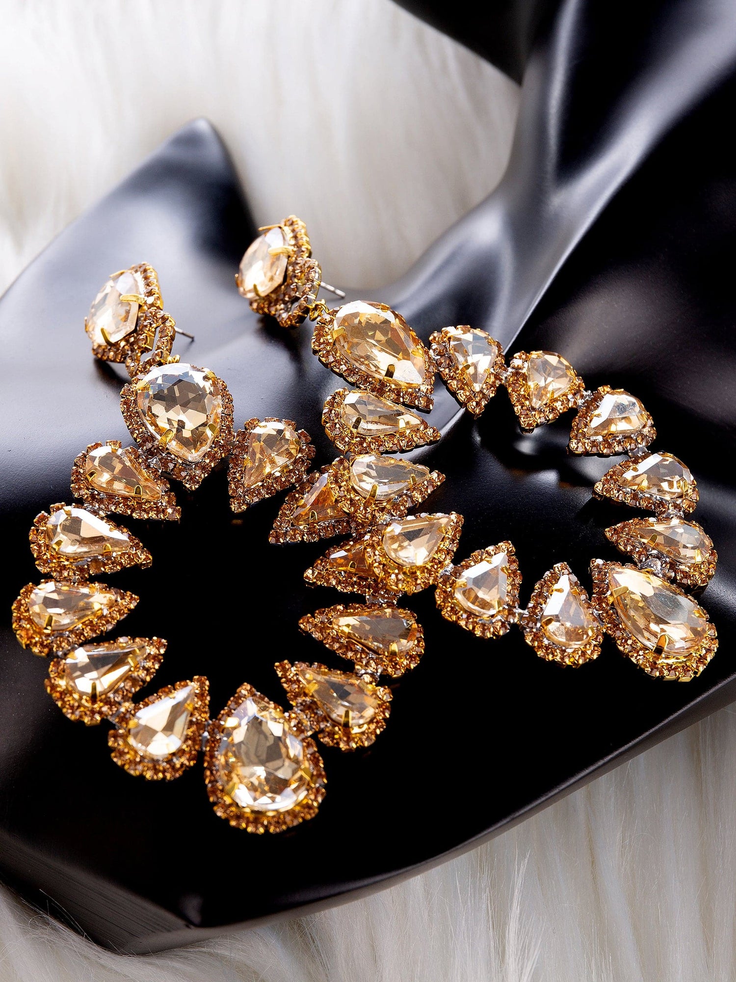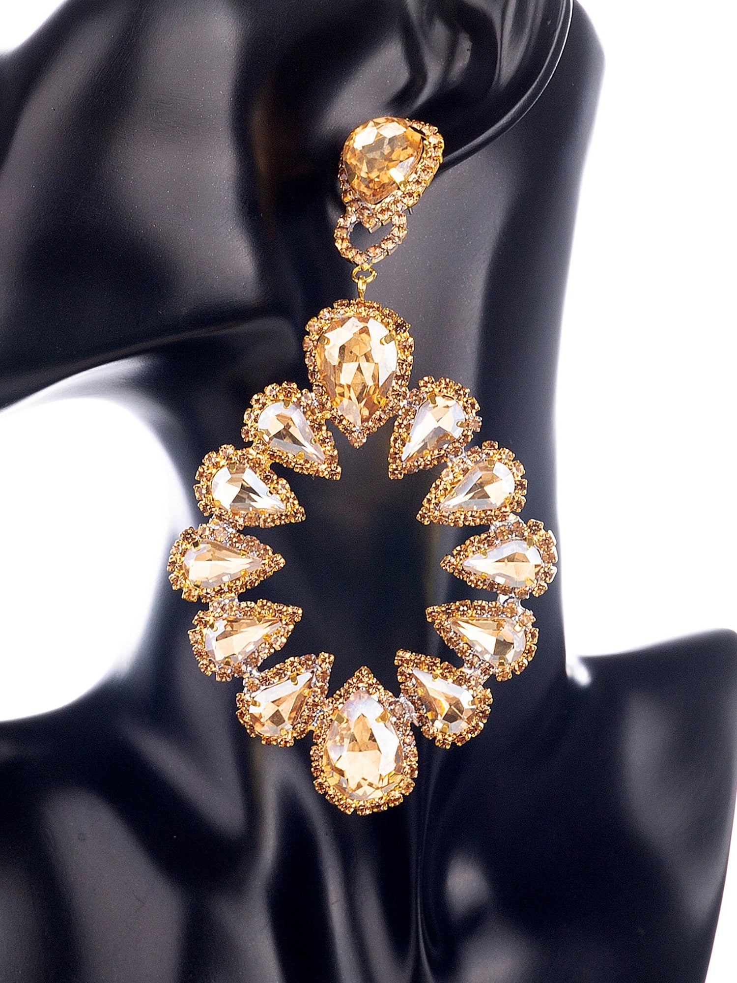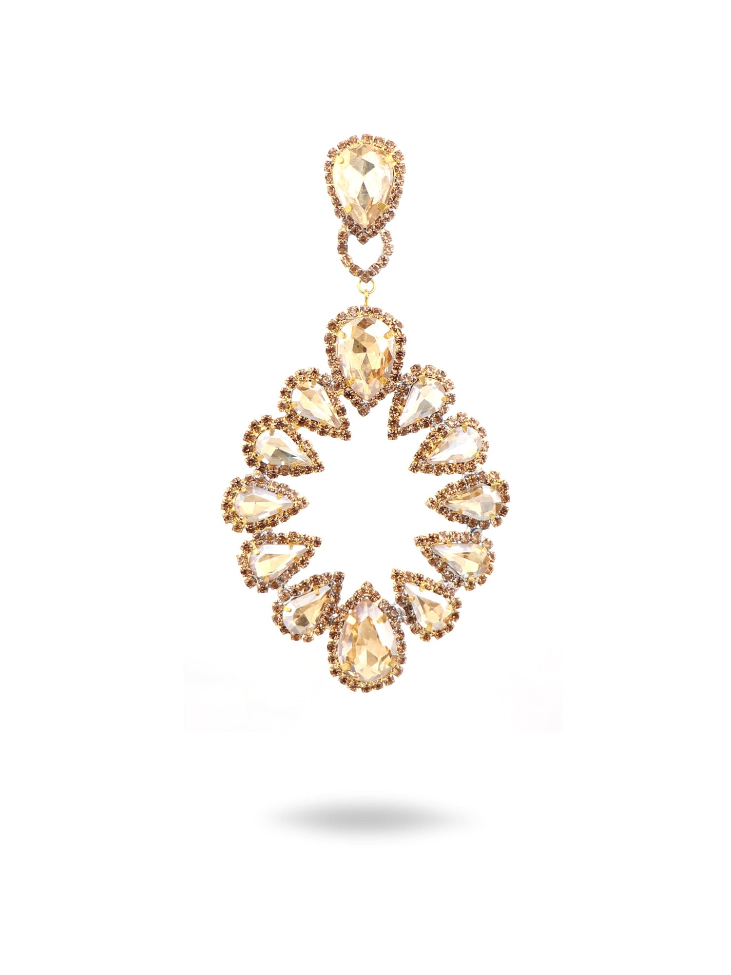 A string of Brazilian rhinestones is subtly suspended in the shape of a sunflower from a smooth upside-down drop. We love how pretty and playful they are!
