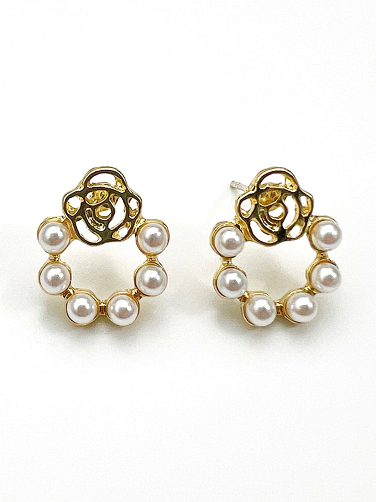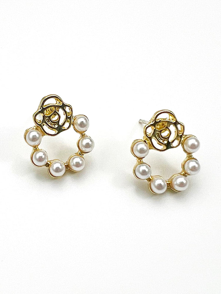 Shaped like a wreath, the details of this “Garland Stud Style Earrings” are gold roses and pearls. Roses symbolize elegance, while pearl means preciousness. Wearing our lightweight “Garland Stud Style Earrings” and keeping your elegant charm. Your uniqueness is extremely precious.