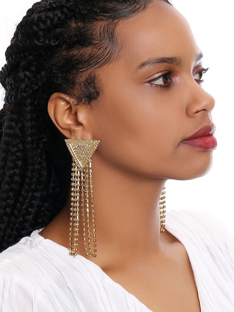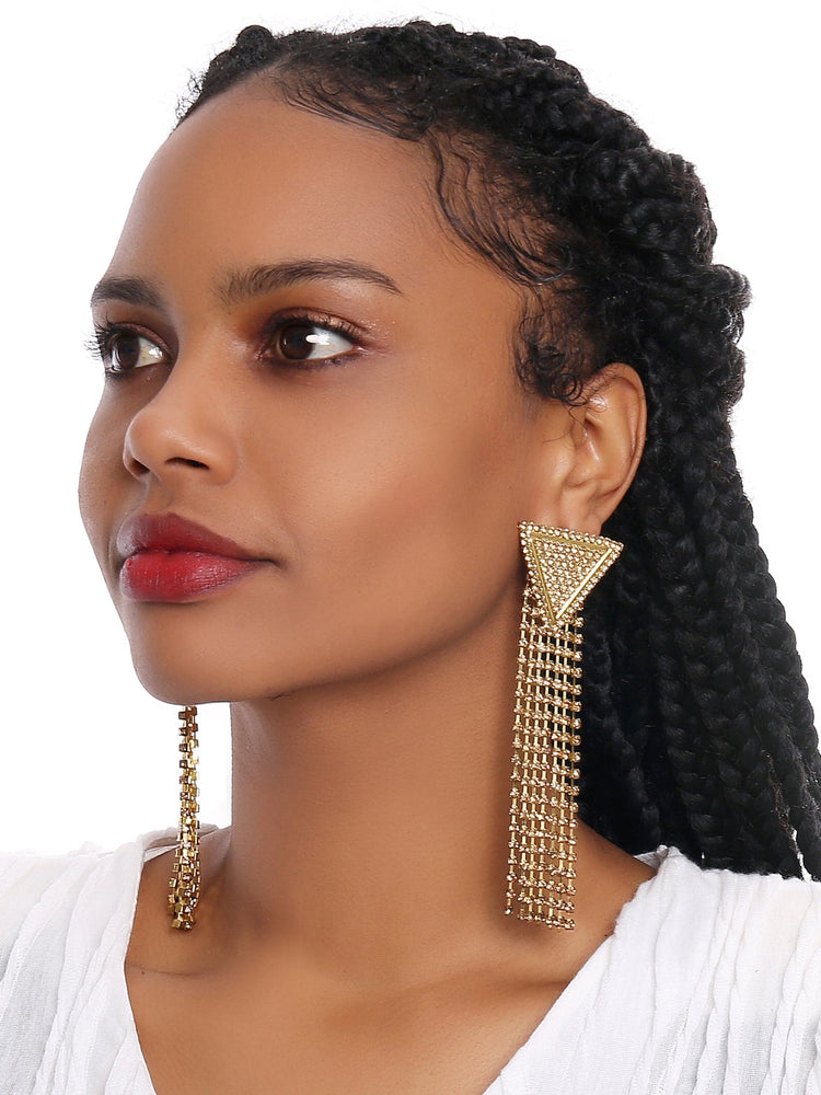Slowdance Triangular Metal Long Fringe Earrings (7 / PACK)