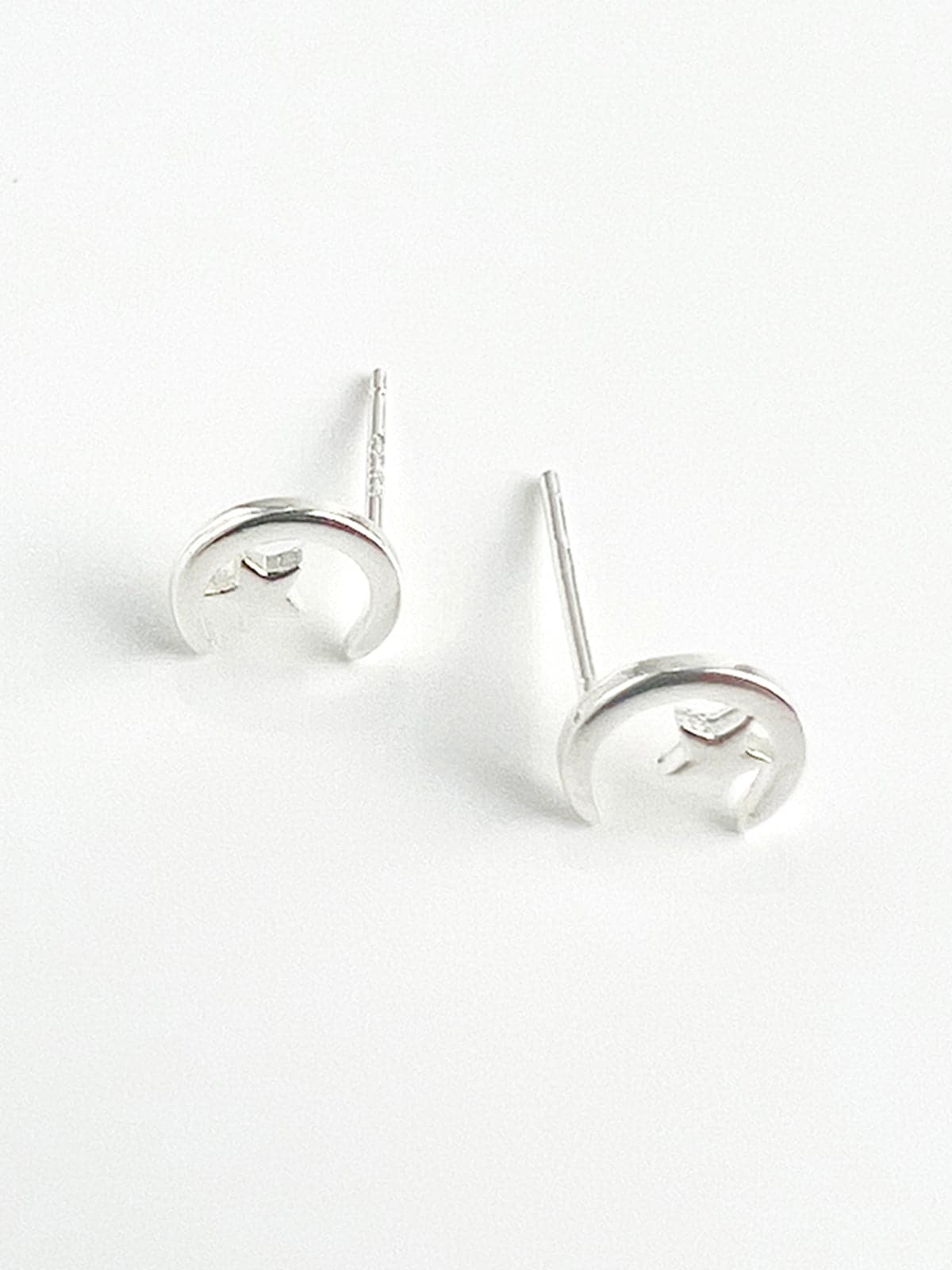 This “Domaine Female Studs” is inspired by the crescent moon. The image of the moon embracing star collides with sterling silver, inspiring quiet elegance and a sense of nostalgia. Get our ““Domaine Female Studs” and gain the lucky charm created exclusively by OE.